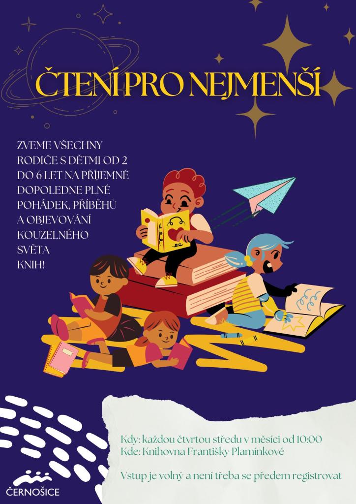 Zveme všechny malé čtenáře a jejich rodiče na pravidelné setkávání plné příběhů, pohádek a společného objevování knih. Každou čtvrtou středu v měsíci se v knihovně budeme společně ponořovat do kouzelných příběhů, zpívat, povídat si a hravou formou rozvíjet lásku ke čtení.