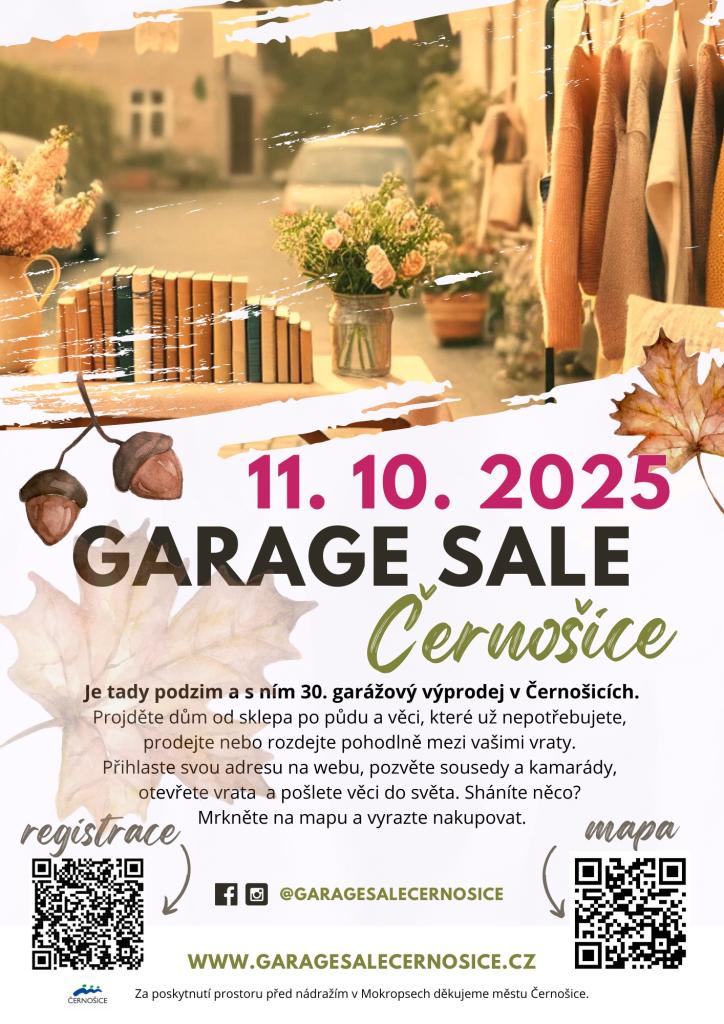 Zájemci o prodej se mohou registrovat přes formulář na www.garagesalecernosice.cz/registrace. Přespolní, nebo ti, kteří bydlí na odlehlejších místech, mohou využít hromadné prodejní místo u mokropeského nádraží.