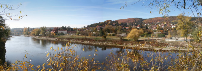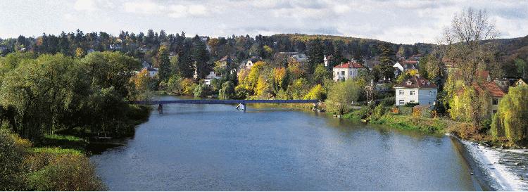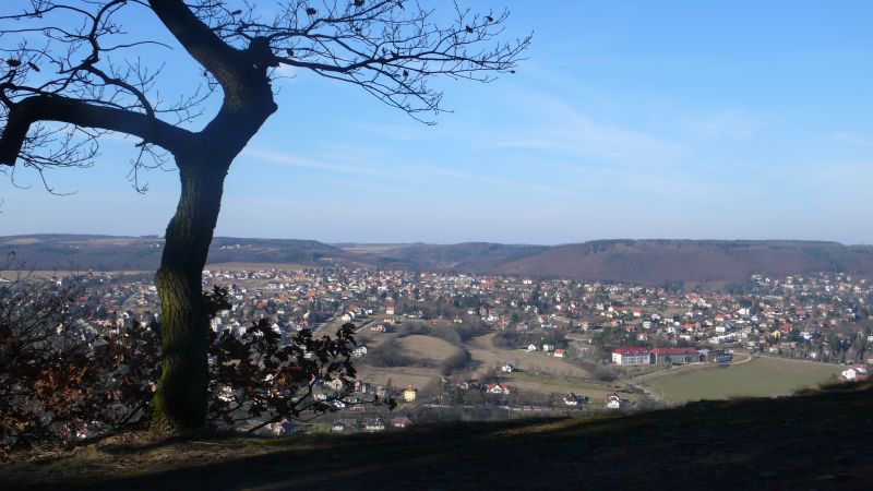 Pohled na Mokropsy a Vráž z vyhlídky nad městem.
